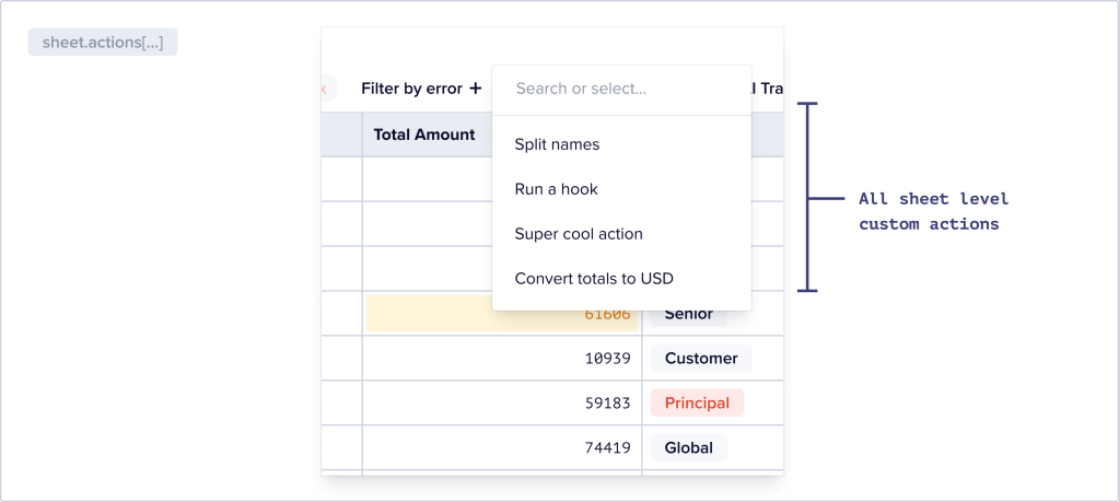 This can be a powerful tool when combined with the various methods for the bulk resolution for errors. Users can select specific data and then only perform either a default or custom action on that data.