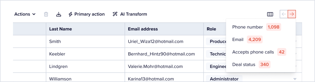 Earlier, I referenced the record status quick filter. This is a quick filter optimized to surface records based on whether they are valid or invalid. This button group shows counts by status – it’s a great way to get a high level of view of the dataset. This makes it really easy for end users to find dirty data.