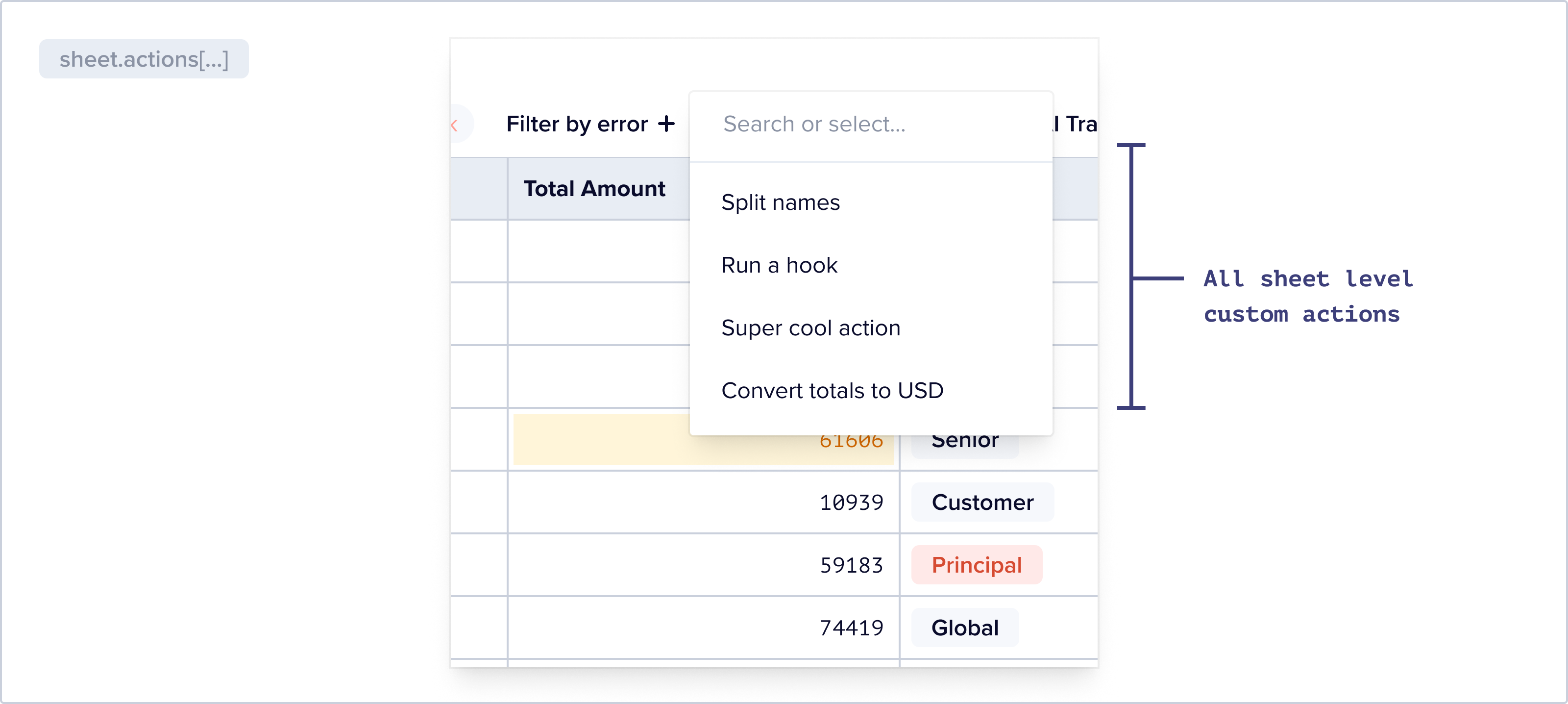 This can be a powerful tool when combined with the various methods for the bulk resolution for errors. Users can select specific data and then only perform either a default or custom action on that data.