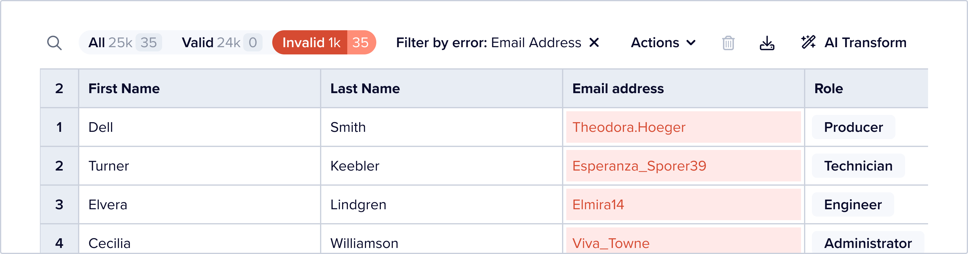 When you have a small dataset with a small number of errors it’s fairly trivial to go in and edit cells one by one to fix your data. But many of Flatfile’s users are uploading datasets with many thousands of records. And absolutely no one wants to correct thousands of errors manually.